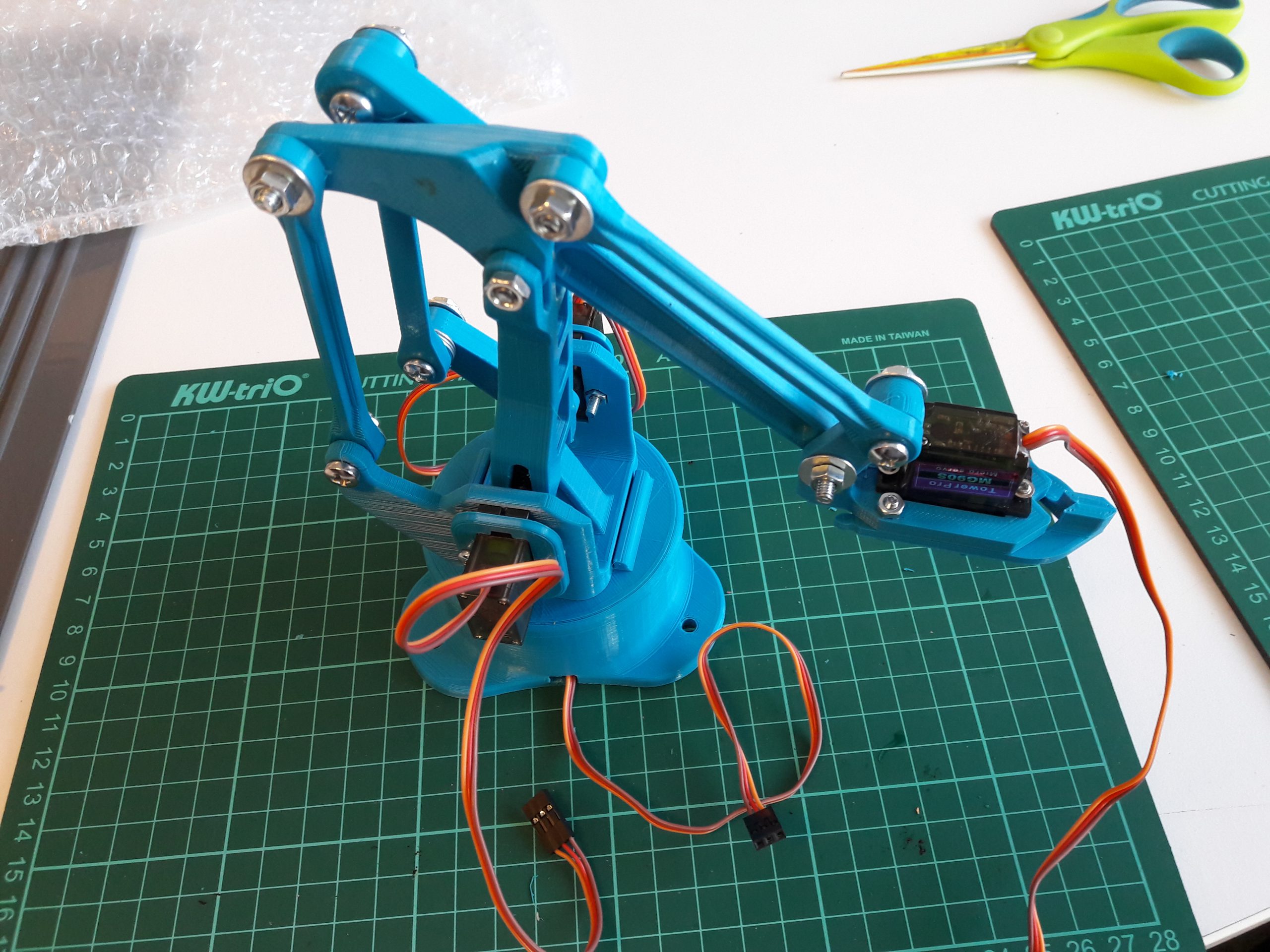 Bu projede öğrenme yoluyla hareket kopyalayan robot kol yapımından bahsedeceğim. Endüstride kullanılan robot kollar, her zaman aynı hareketleri yapmaya odaklıdır. Örneğin ürün bandından bir nesneyi alıp başka bir banda aktarımını yapan robot kollar sürekli aynı hareketi yapmaktadır. Bu hareketler önceden öğretilerek robot kola aktarılır. Burada da aynı mantıkla robot kola manuel olarak hareket yaptırıp bu hareketleri kaydedecek ve ardından kendi kendine yapacaktır. Normal bir robot kola kodda hareketlerin konumunu girmek ayrı bir zorluk gerektirir. Çünkü hareketin sonunda kolun nasıl hareket edeceğini ve hangi durumda olacağını kestirmek biraz zor. Burada yapılan işlem ise, hareket öğretirken eş zamanlı olarak hareketin nasıl olduğunu görüyoruz ve ona göre senaryo kurabiliyoruz.
